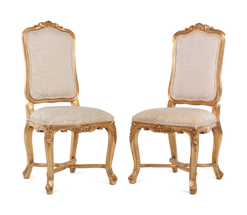A Pair of Louis XV Style Giltwood Side Chairs