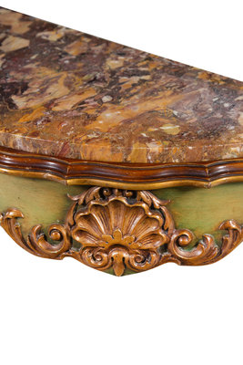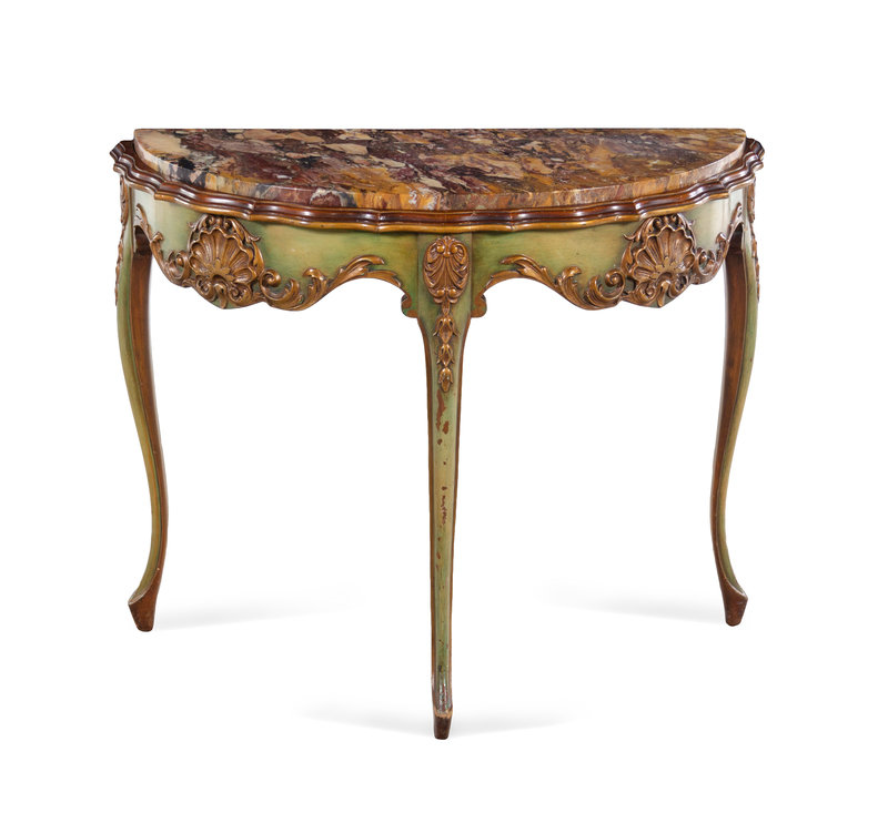 A Louis XV Style Painted and Parcel Gilt Marble-Top Console Table