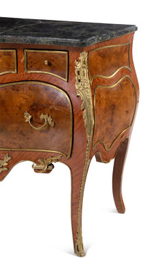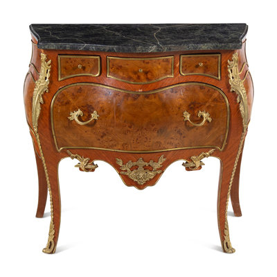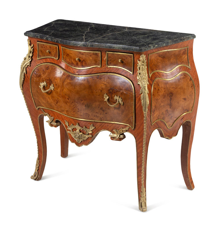 A Louis XV Style Gilt Bronze Mounted Marble-Top Bombe Commode
