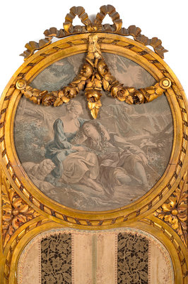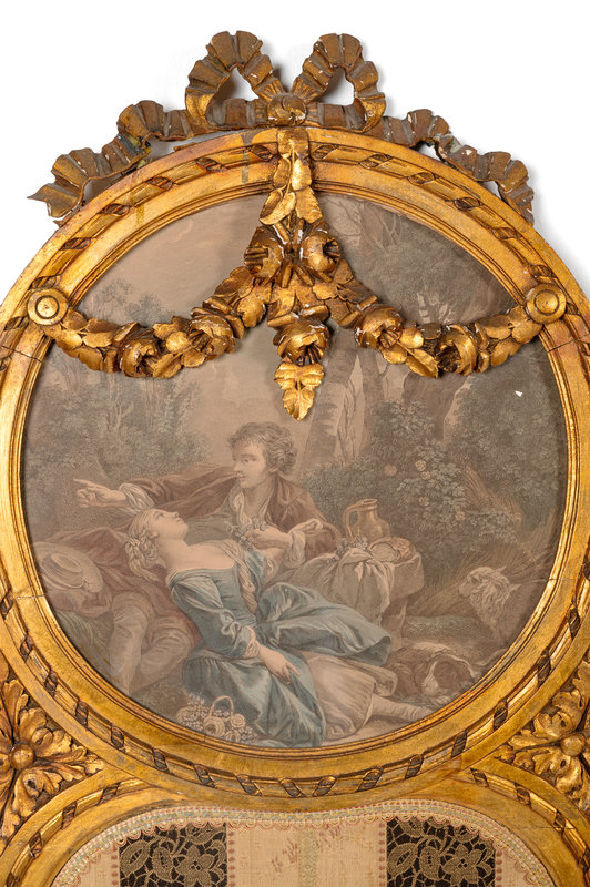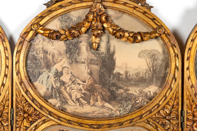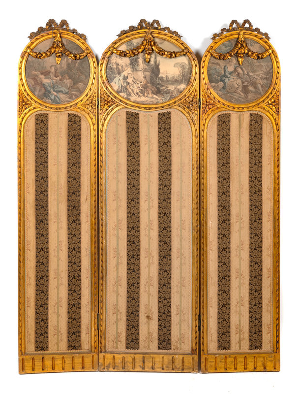 A Louis XVI Style Giltwood Three-Panel Floor Screen