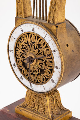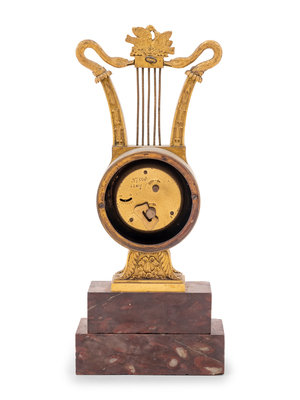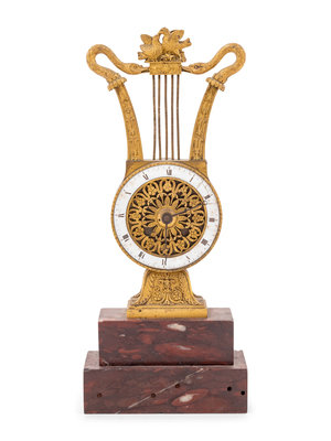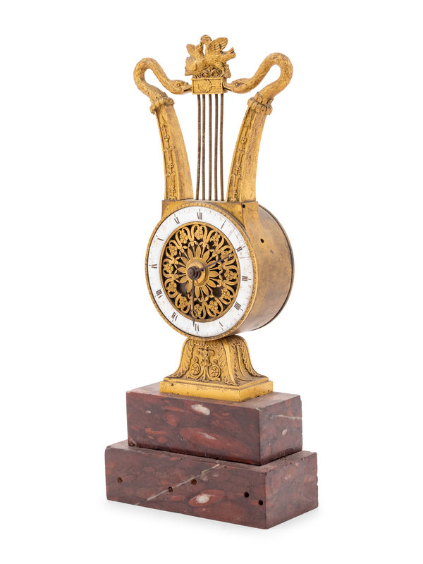 An Empire Style Gilt Bronze and Rouge Marble Clock