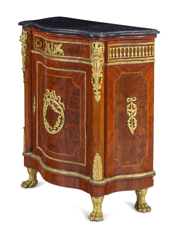 An Empire Style Gilt Bronze Mounted Kingwood Veneered Marble-Top Meuble d'Appui