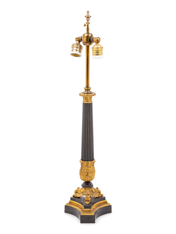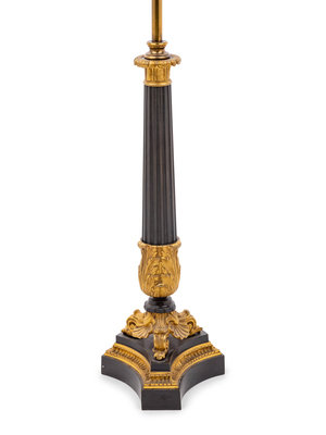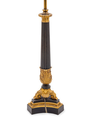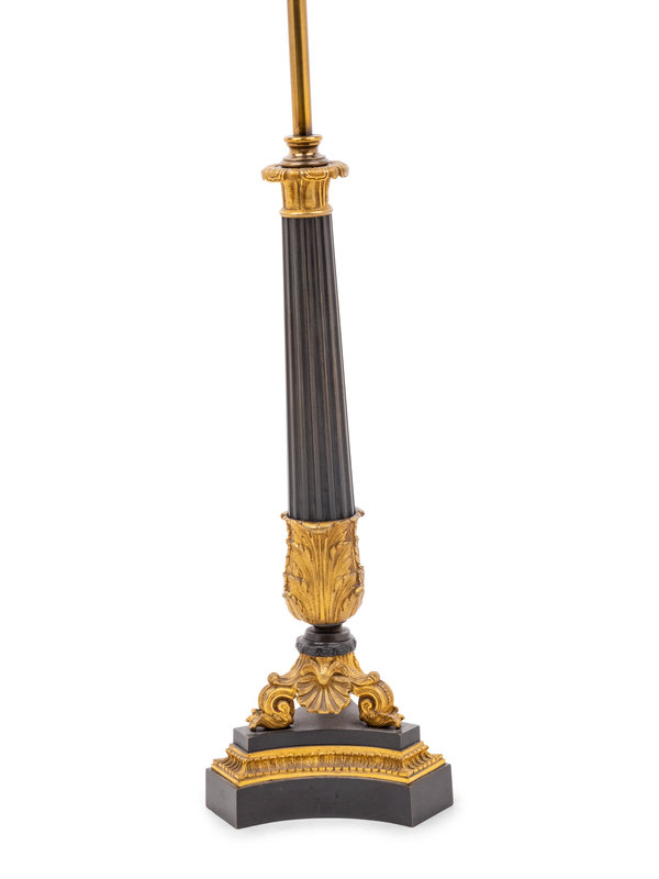 A Louis Philippe Gilt and Patinated Bronze Oil Lamp Converted to Electricity