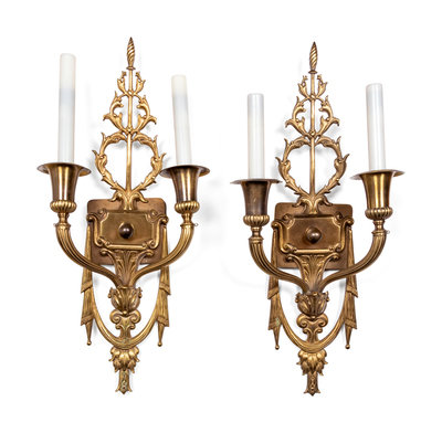 A Pair of Neoclassical Gilt Bronze Two-Light Sconces