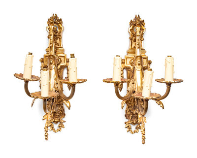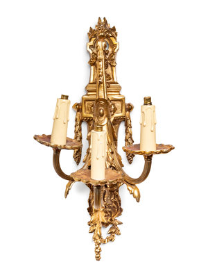 A Pair of Neoclassical Gilt Bronze Three-Light Sconces