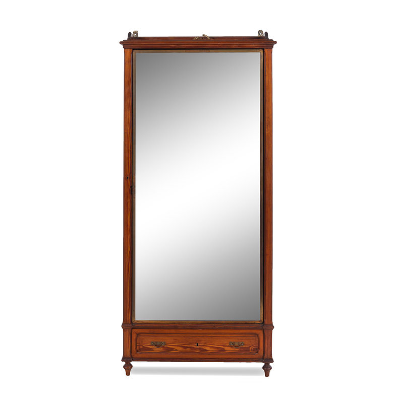 with two mirrored doors; bearing a Miroir Brot label at the top of the front-facing door frame and surrounding the door handle.