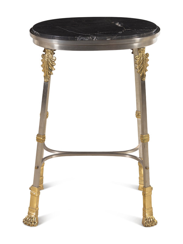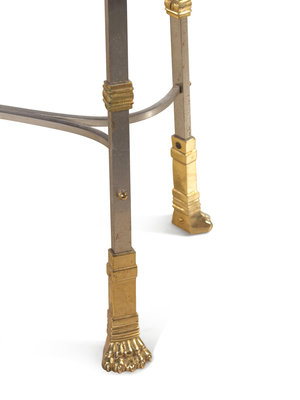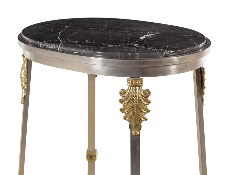 A French Steel and Brass Marble-Top Table in the Style of Maison Jansen