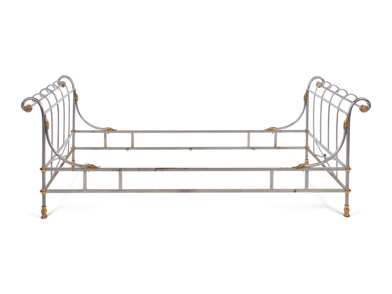 A French Steel and Brass Bed in the Style of Maison Jansen