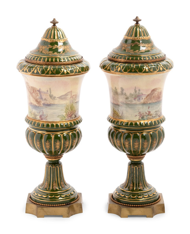 A Pair of Sèvres Style Porcelain Covered Urns