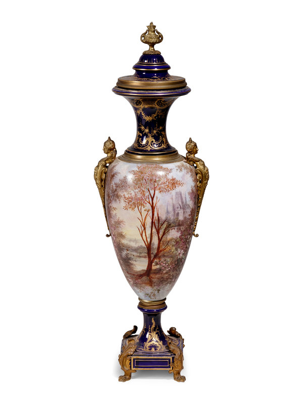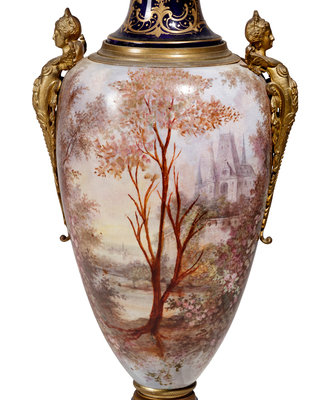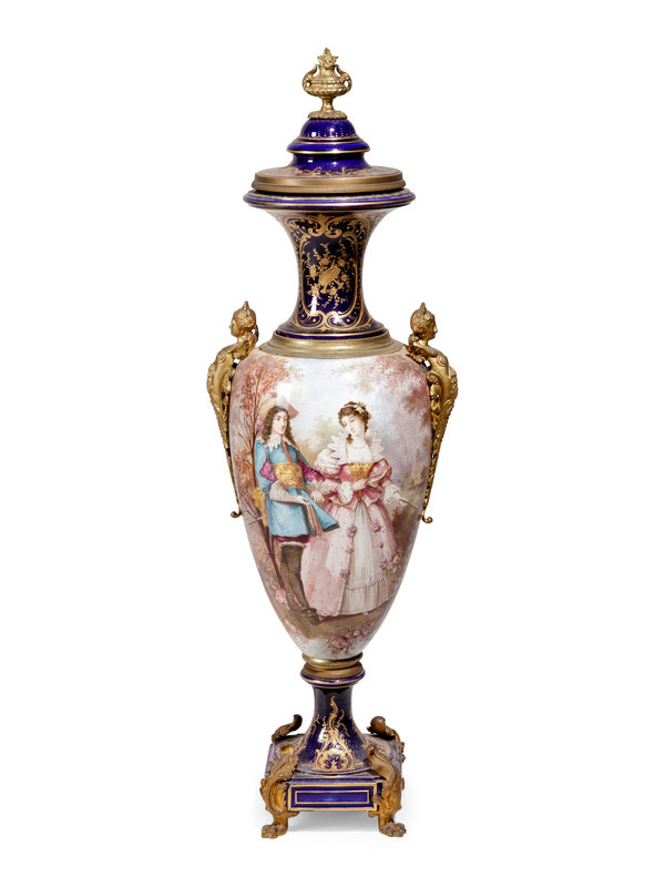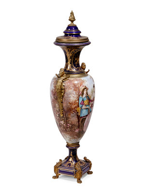 A Sèvres Style Gilt Metal Mounted Porcelain Covered Urn