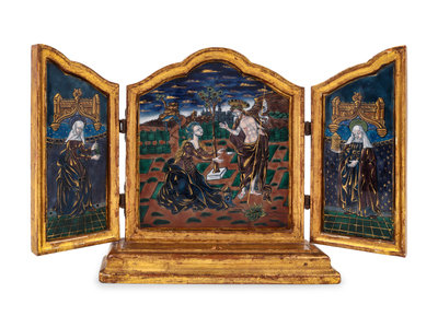 A French Giltwood and Enamel Triptych