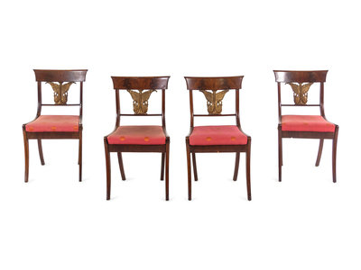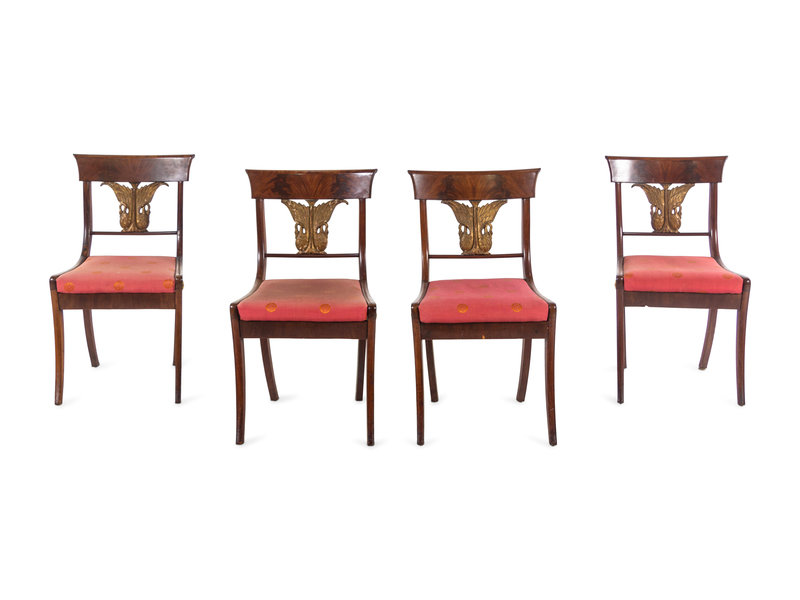 A Set of Four Italian Parcel Gilt Walnut Side Chairs