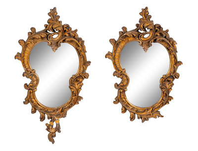 A Pair of Italian Rococo Style Giltwood Mirrors