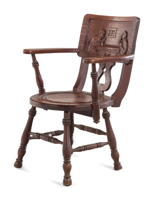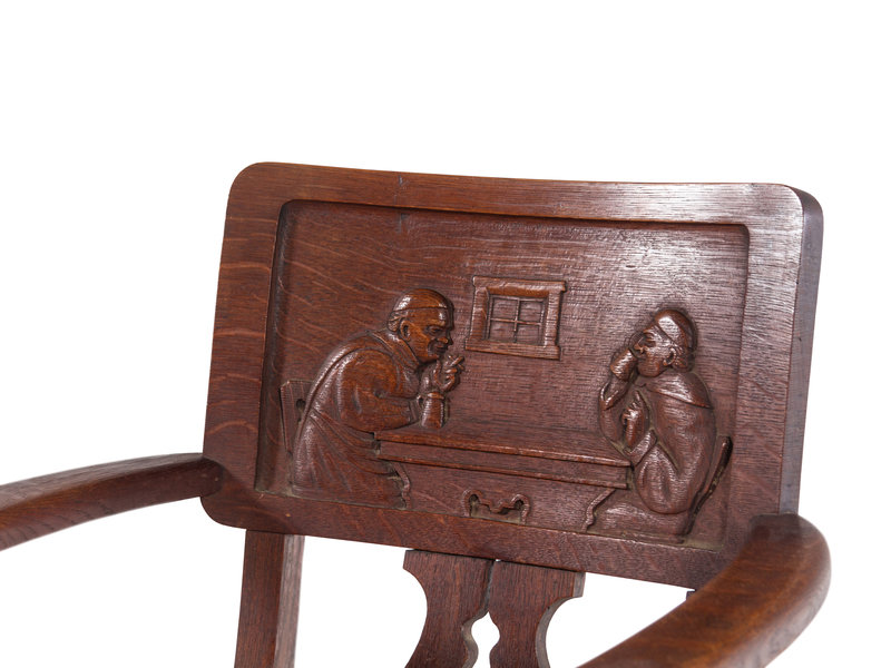 A German Carved Oak Bier Stube Armchair