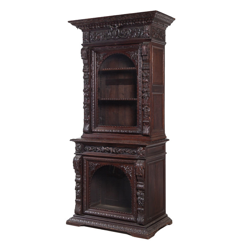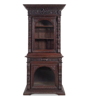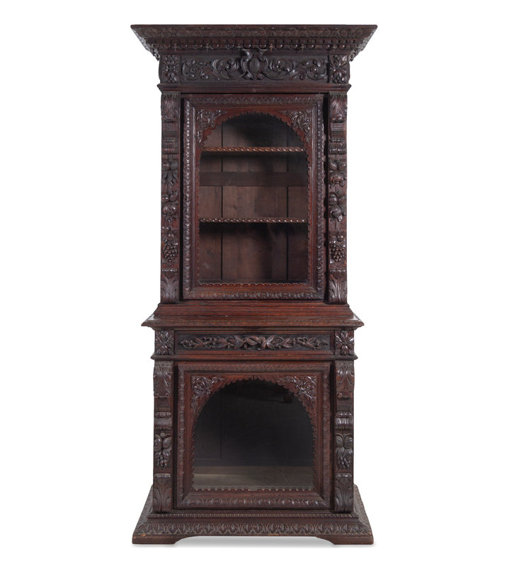 A Renaissance Revival Carved Oak Two-Part Cabinet
