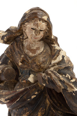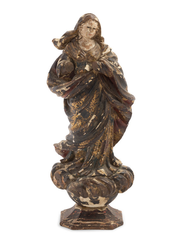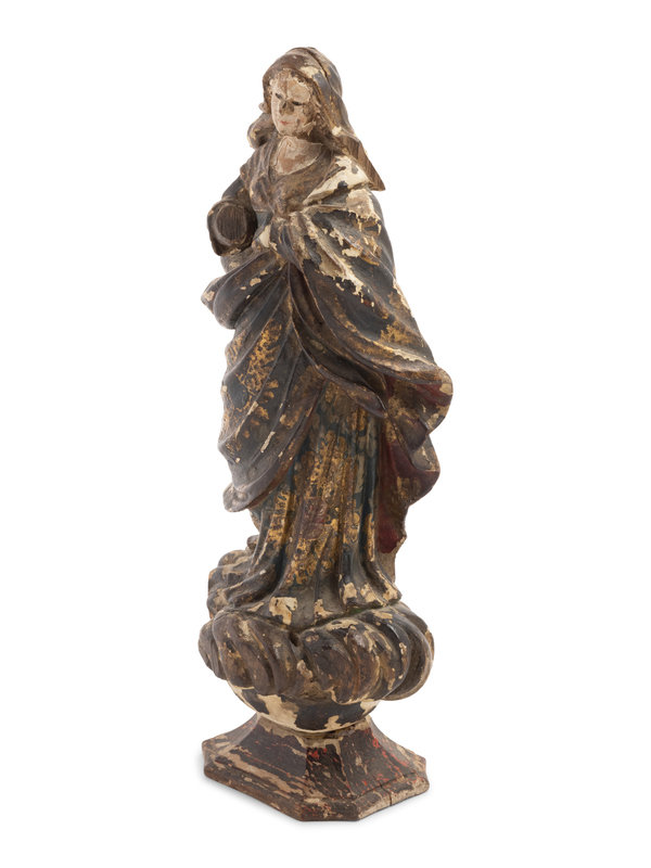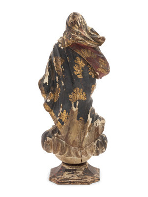 A Continental Painted and Parcel Gilt Carved Wood Figure of an Angel