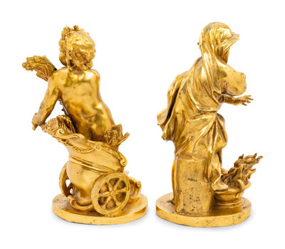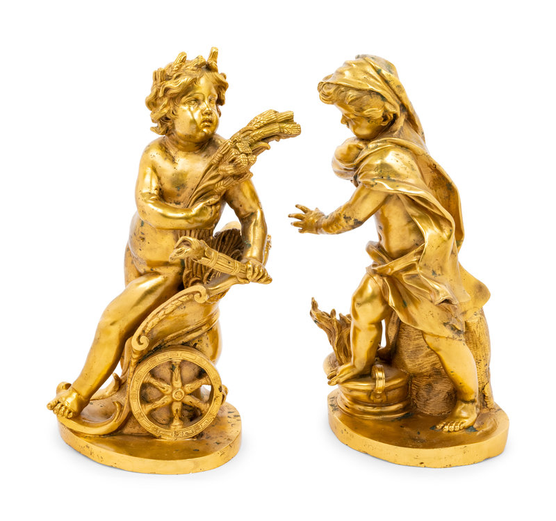 A Pair of Continental Gilt Bronze Putto Ornaments