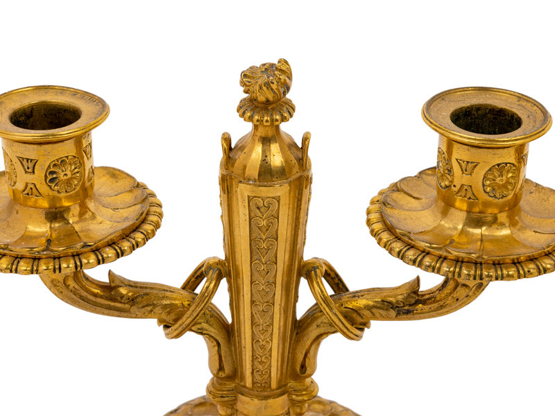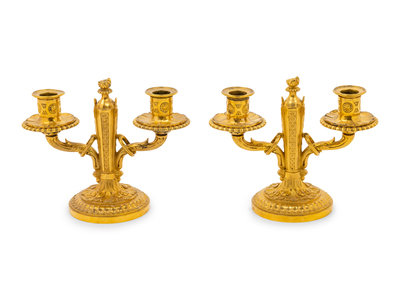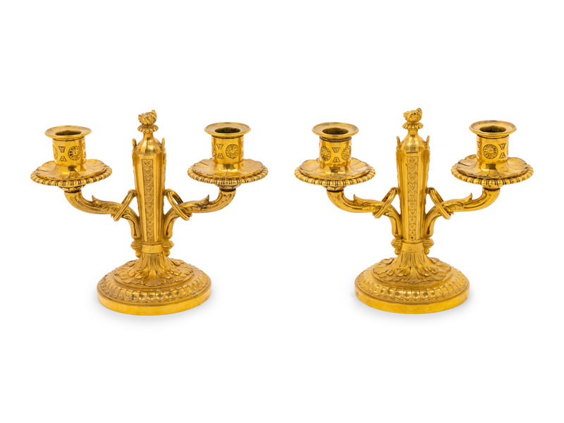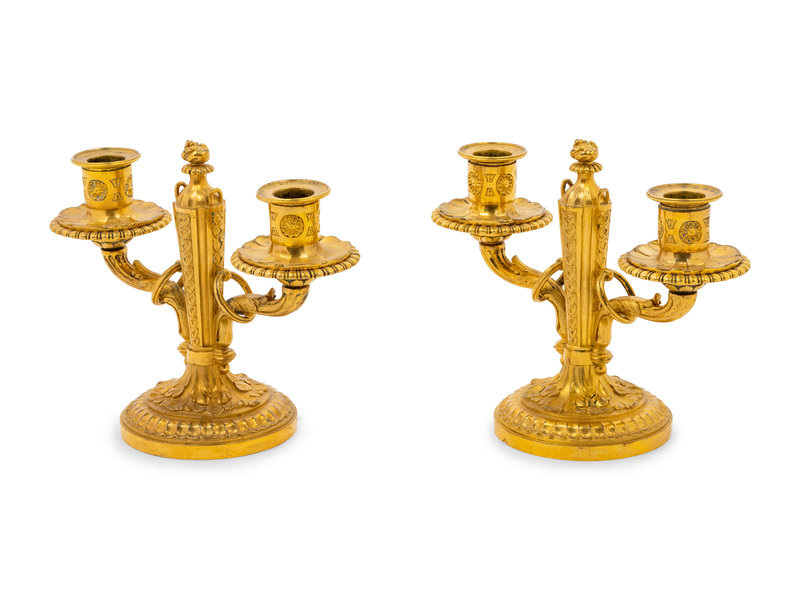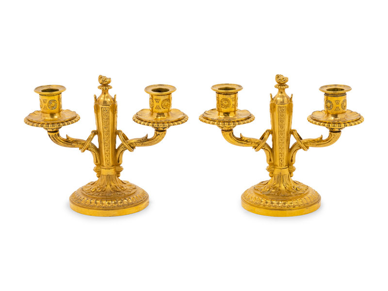 A Pair of Baltic Neoclassical Gilt Bronze Two-Light Candelabra
