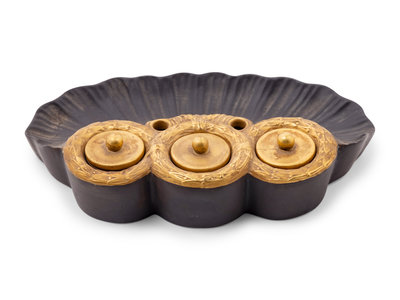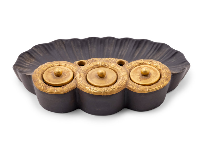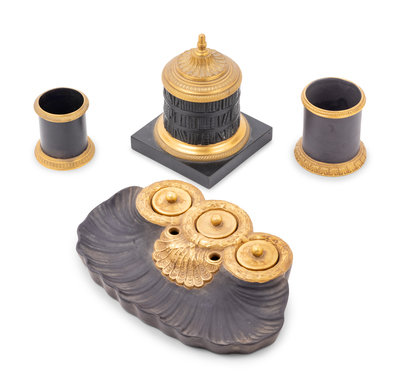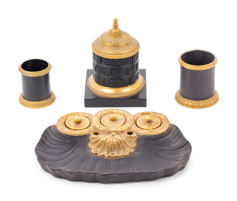 An Assembled Four-Piece Gilt Bronze Mounted Basalt Desk Set