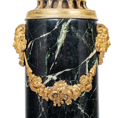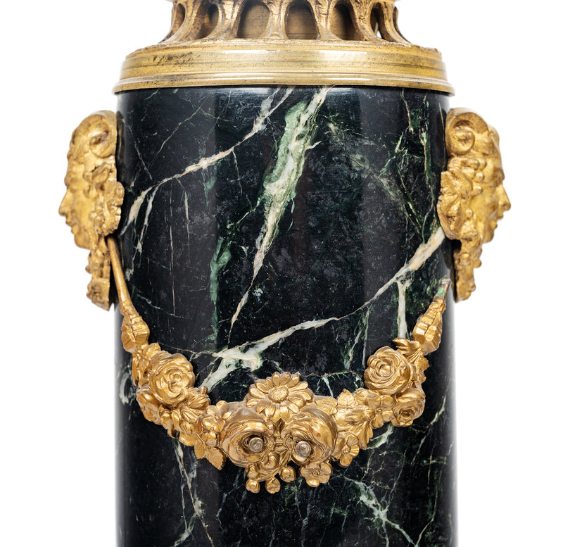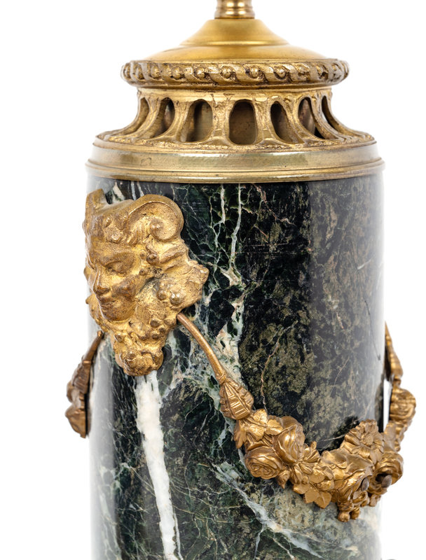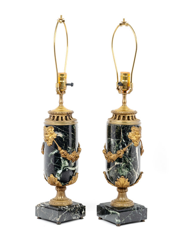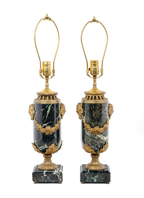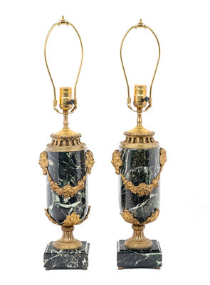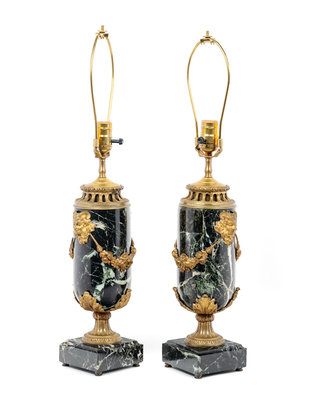 A Pair of Continental Gilt Metal Mounted Marble Lamps