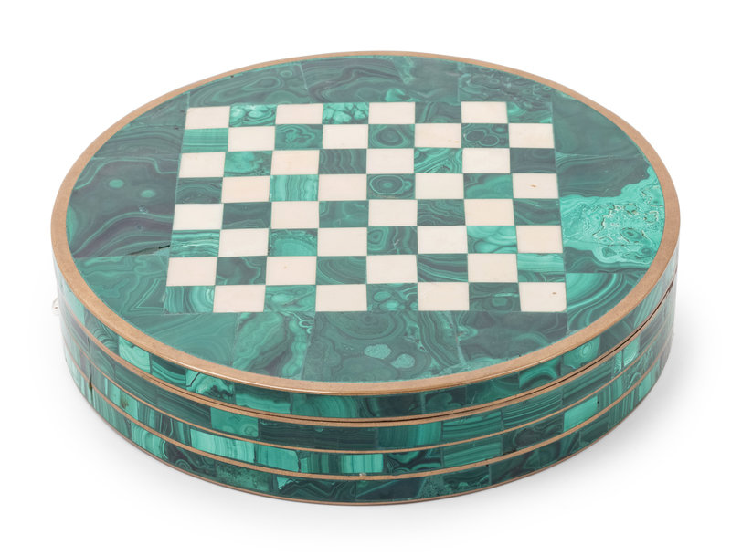 A Malachite Mounted Bronze Game Box