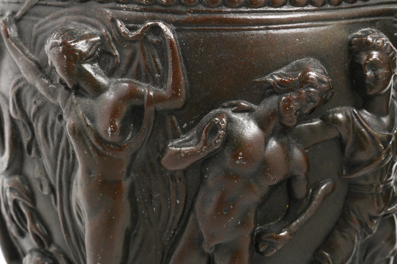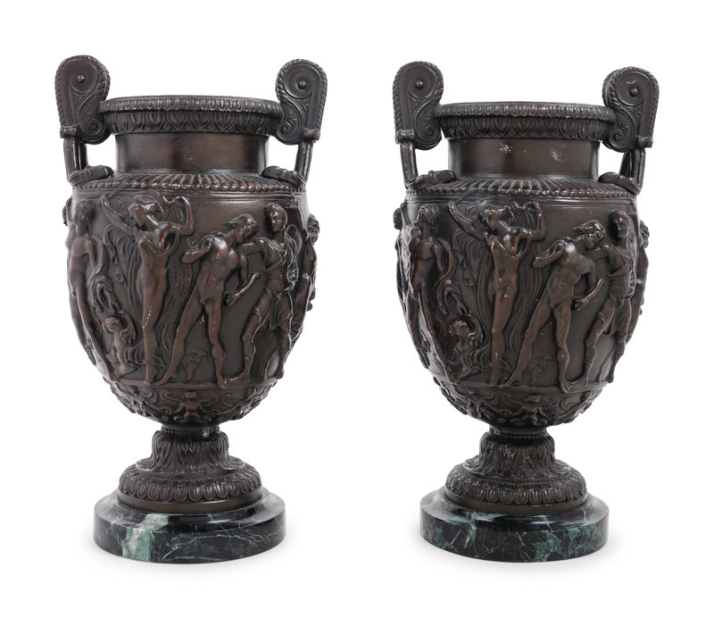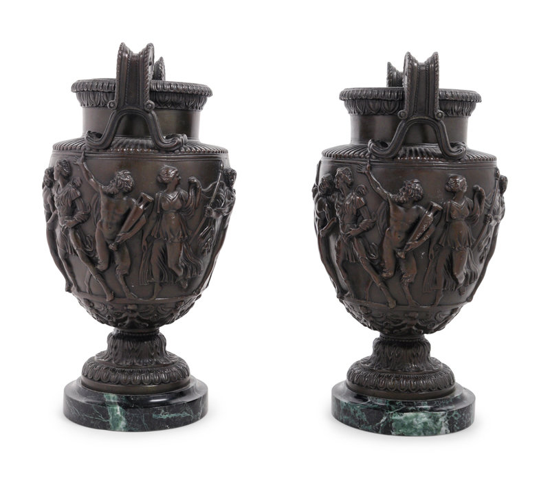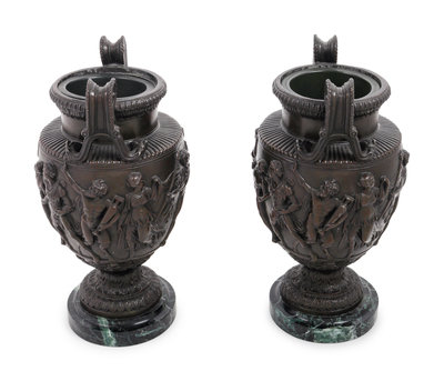 A Pair of Grand Tour Cast Metal and Marble Urns