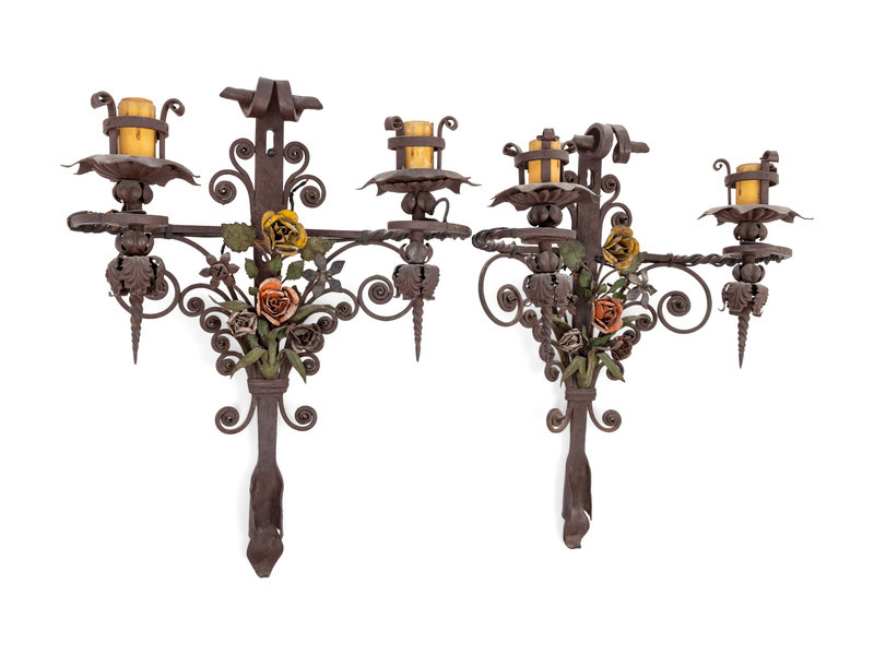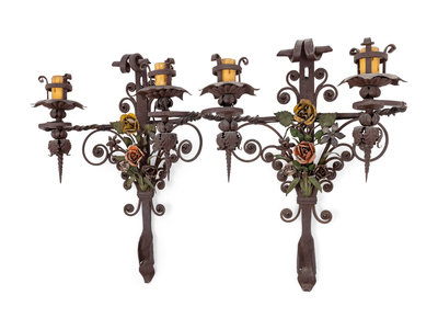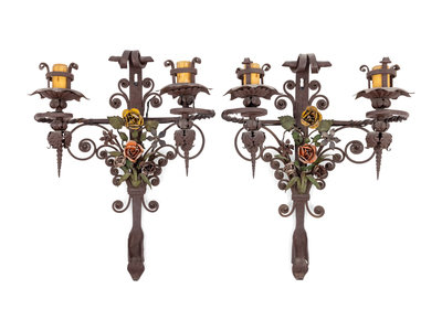 A Pair of Wrought Iron Two-Light Sconces