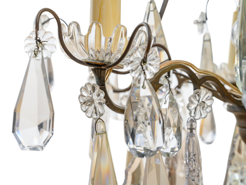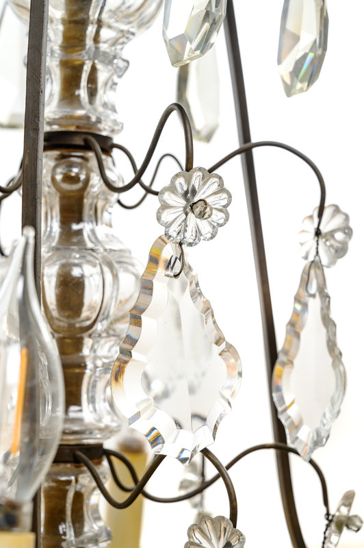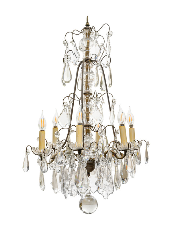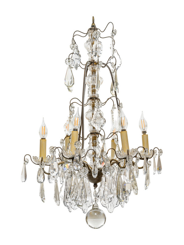 A Continental Cast Metal and Cut Glass Six-Light Chandelier
