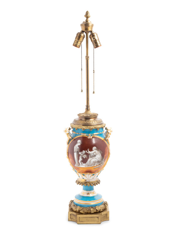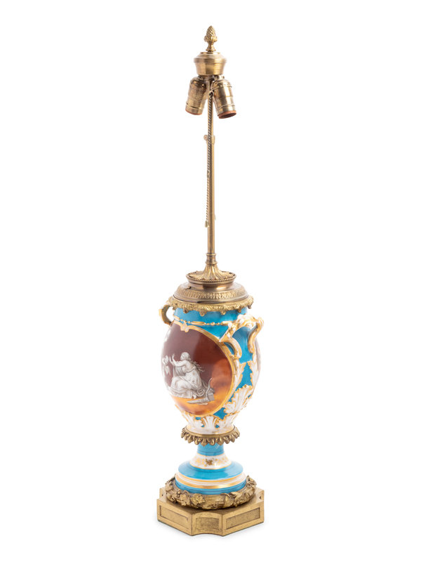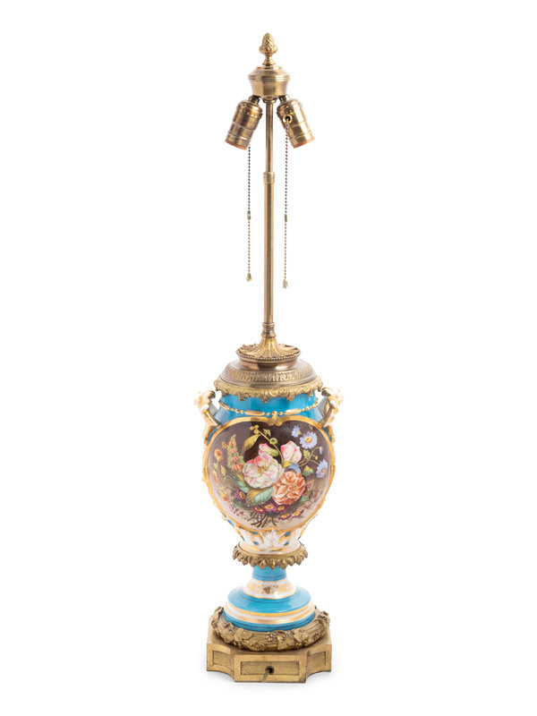 A Continental Gilt Bronze Mounted Porcelain Lamp
