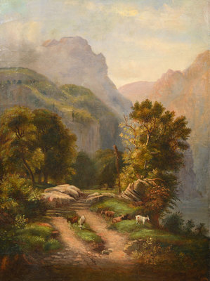 Mountainous Landscape with Goats