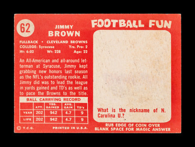 A 1958 Topps Jim Brown Rookie Football Card No. 62,