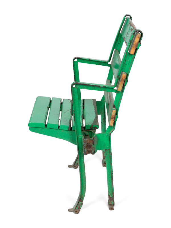 standalone chair in trademark old Comiskey green, numbered 11.