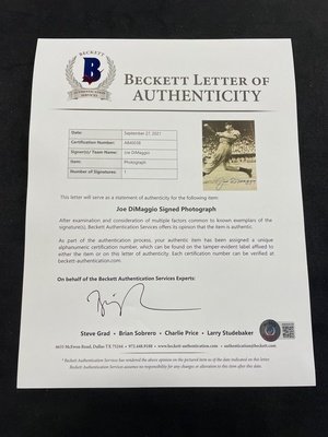 A Joe DiMaggio Signed Autograph Large Format Photograph (BAS Beckett Authentication Services Certified),