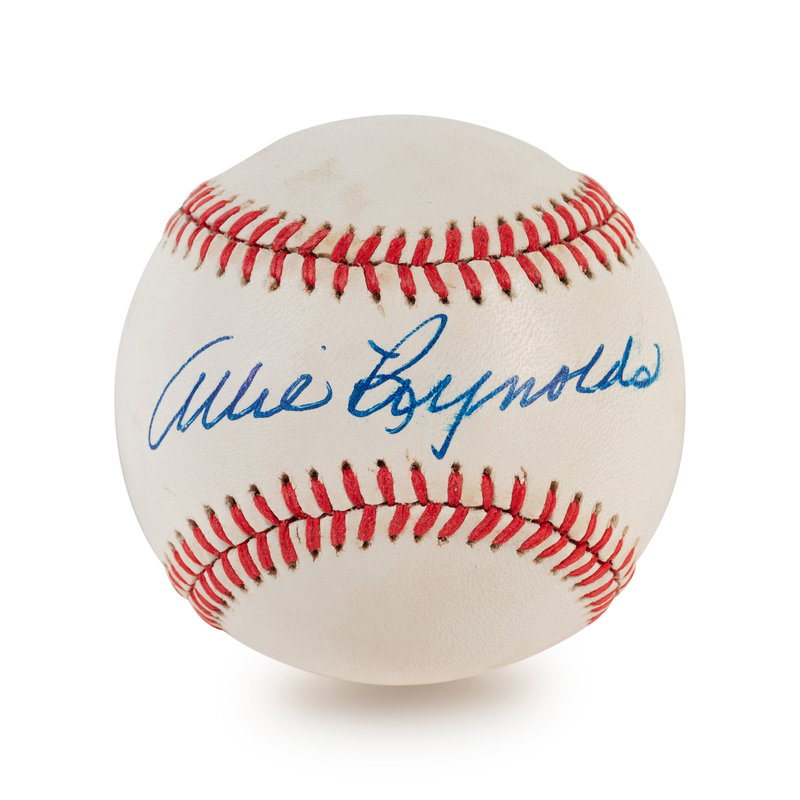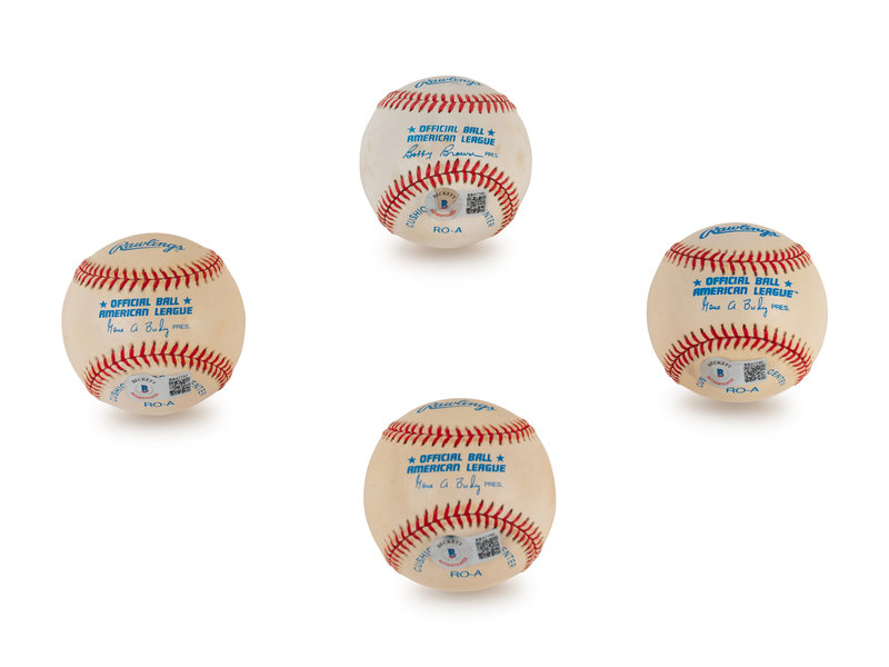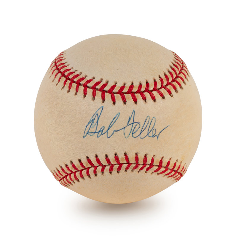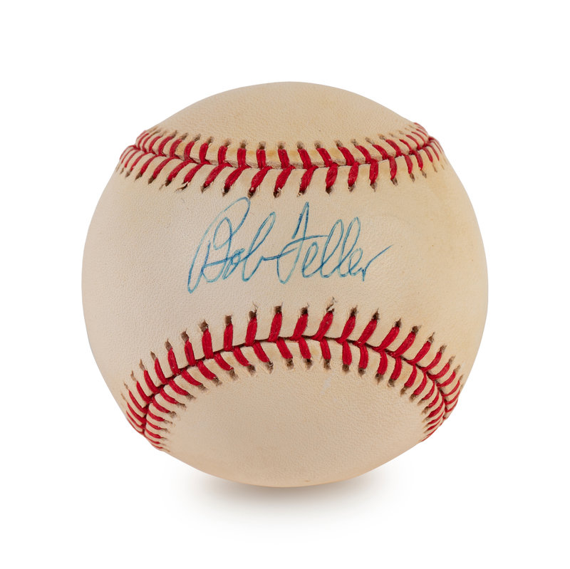 comprising of three signed official American League baseballs inscribed "Bob Feller" in blue ink and one inscribed "Allie Reynolds" in blue ink.