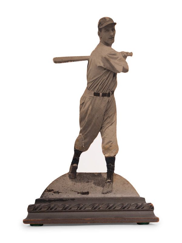 A Group of Don Manno Personal Boston Bees / Boston Braves Baseball Items Including Original George Burke Photograph and Wood Cut Stand Up,