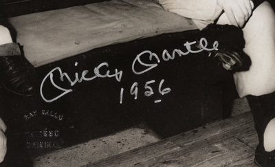 inscribed "Mickey Mantle 1956" in silver ink. Ray Gallo seal stamped RAY GALLO c. 1980 ORIGINAL PHOTOGRAPH. Autograph reviewed and certified authentic by Beckett Authentication Service (BAS).