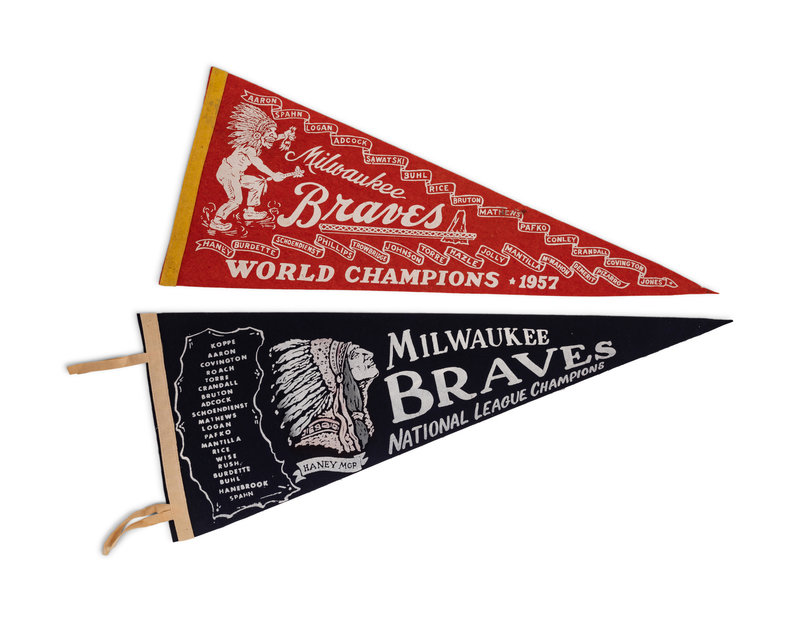 A Group of Vintage Milwaukee Braves Early Hank Aaron Pennants