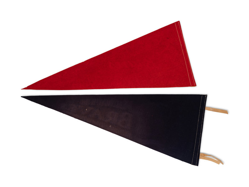 comprising of a blue National League Champions pennant and a red 1957 World Series Champions pennant.