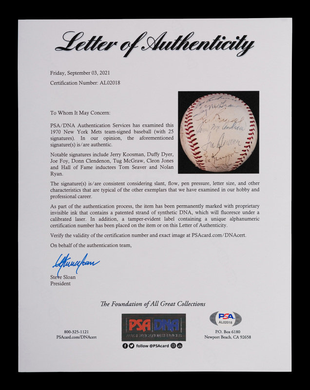 A Vintage 1970 New York Mets Team Signed Autograph Baseball Including Nolan Ryan and Tom Seaver (PSA Authentic)