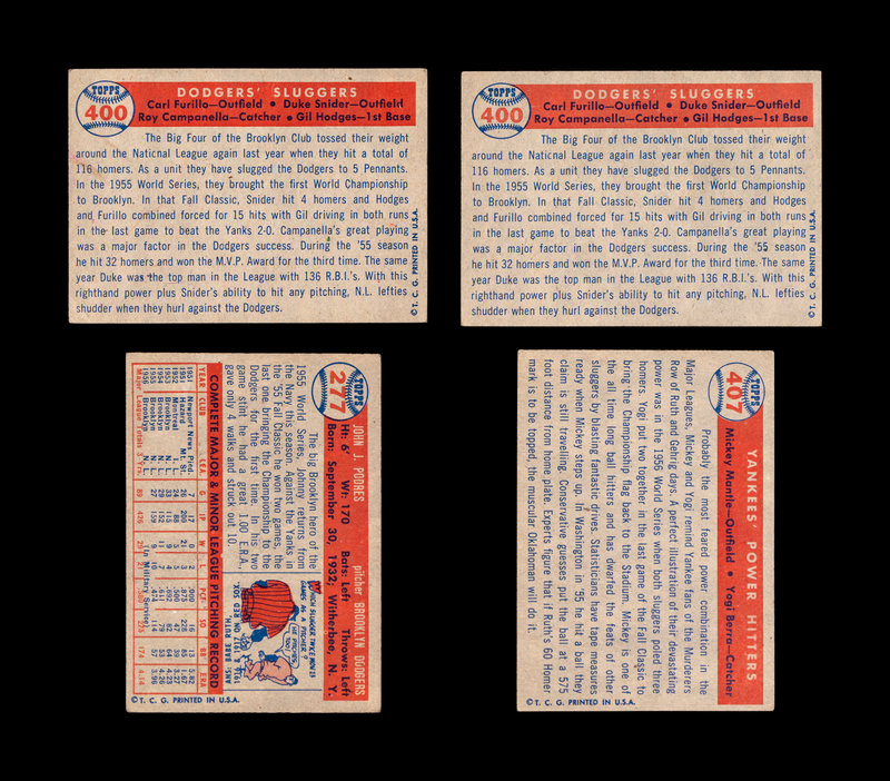 comprising of Johnny Podres (No. 277), two Dodgers Sluggers (No. 400) and Yankees Power Hitters (No. 407).