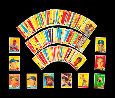 A Group of 133 1958 Topps Baseball Cards Including Roger Maris Rookie and Mickey Mantle,
