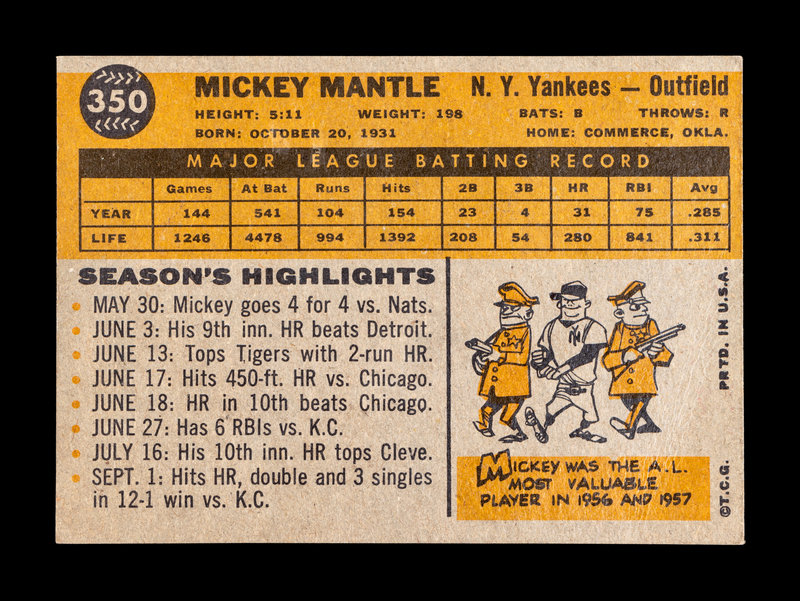 A 1960 Topps Mickey Mantle Baseball Card No. 350