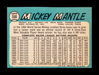 A 1965 Topps Mickey Mantle Baseball Card No. 350