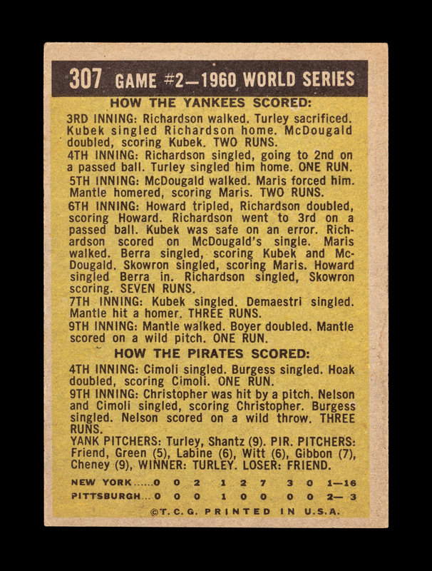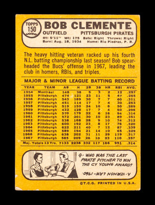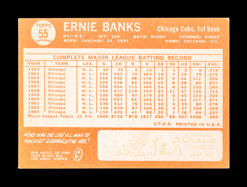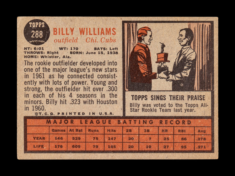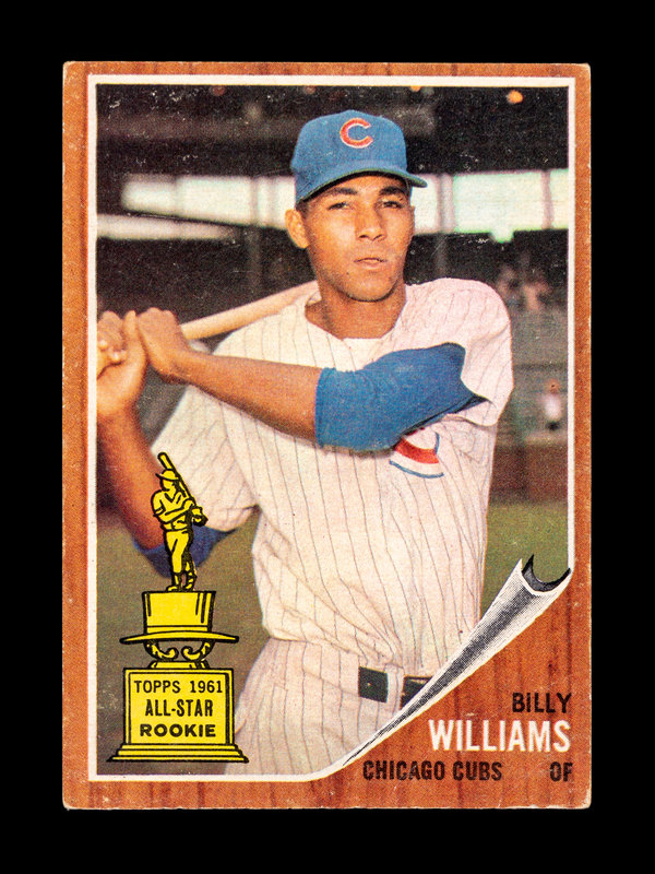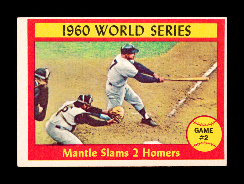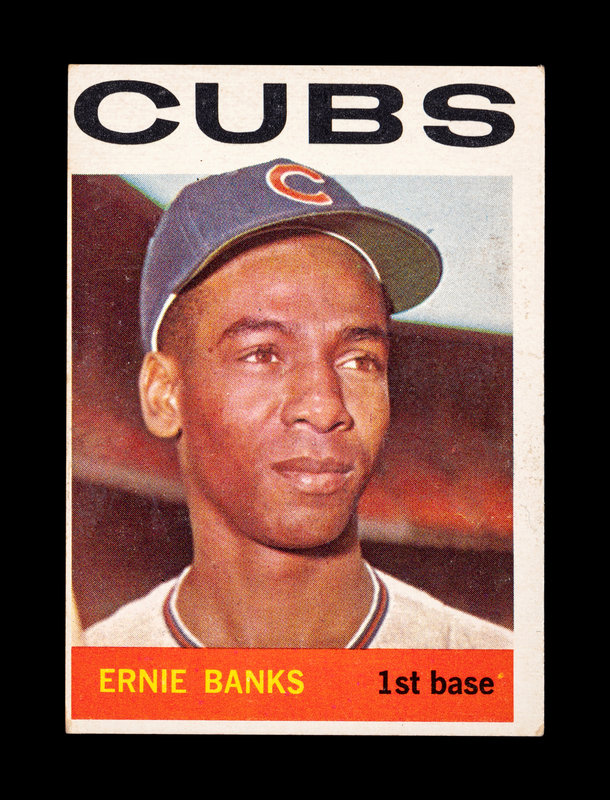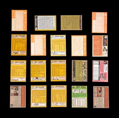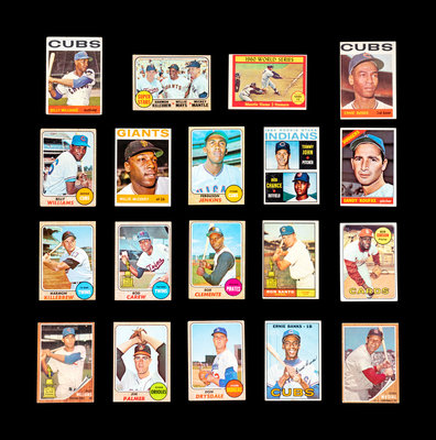 comprising of 1961 Topps Ron Santo (No. 35), 1960 World Series Mantle Slams 2 Homers (No. 307); 1962 Topps Stan Musial (No. 50), Billy Williams (No. 288); 1964 Topps Ernie Banks (No. 55), Indians 1964 Rookie Stars Tommy John (No. 146), Billy Williams (No. 175), Willie McCovey (No. 350); 1966 Topps Sandy Koufax (No. 100); 1967 Topps Ernie Banks (No. 215); 1968 Topps Billy Williams (No. 37), Rod Carew (No. 80), Don Drysdale (No. 145), Roberto Clemente (No. 150), Harmon Killebrew (No. 220), Ferguson Jenkins (No. 410), Super Stars Harmon Killebrew, Willie Mays, Mickey Mantle (No. 490), Jim Palmer (No. 575); 1969 Topps Bob Gibson (No. 200).