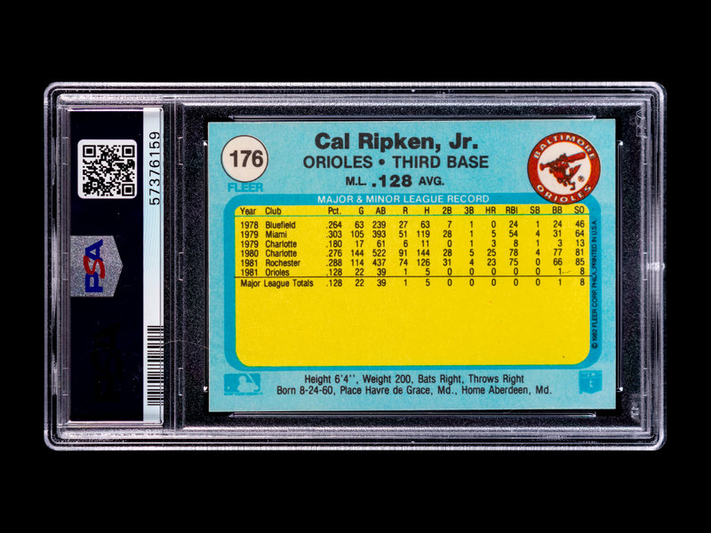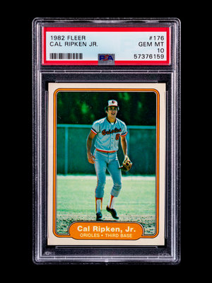 A 1982 Fleer Cal Ripken Jr. Rookie Baseball Card No. 176 (PSA 10, GEM MINT),