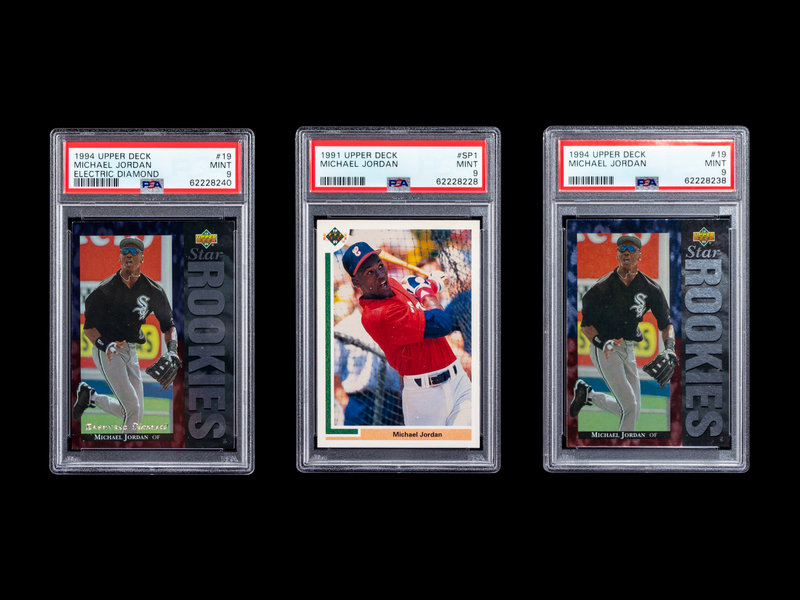 A Group of Three 1990s PSA 9 Mint Michael Jordan Rookie Baseball Cards,