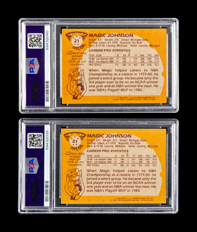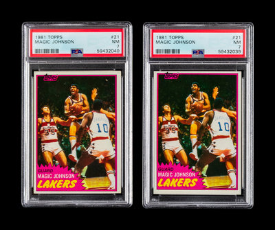 A Group of Two 1981 Topps Magic Johnson Basketball Cards No. 21 (PSA 7 NM)