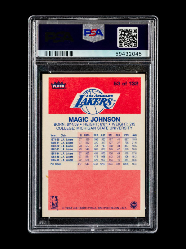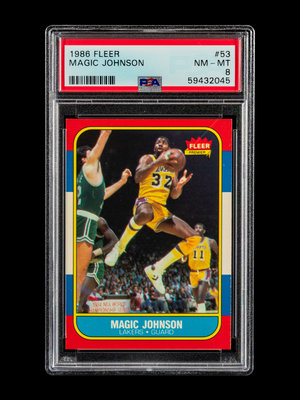 A 1986 Fleer Magic Johnson Basketball Card No. 53 (PSA 8 NM-MT)