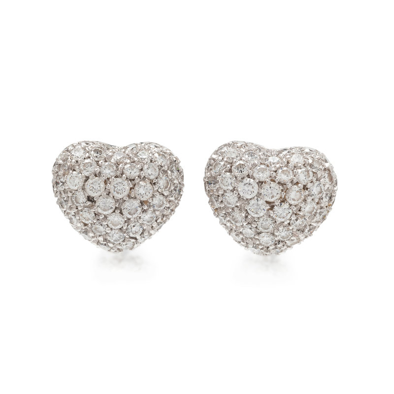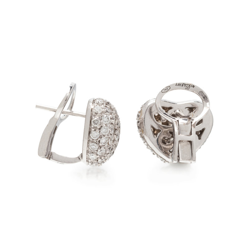 Containing 106 round brilliant cut diamonds weighing approximately 2.00 carats total, posts with clip backs. Mounted in white gold. 1/2 inch long.