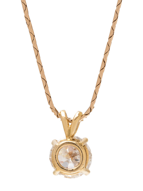 Containing one old European cut diamond weighing approximately 1.75 carats, suspended from a fancy link chain. 19 inches long.